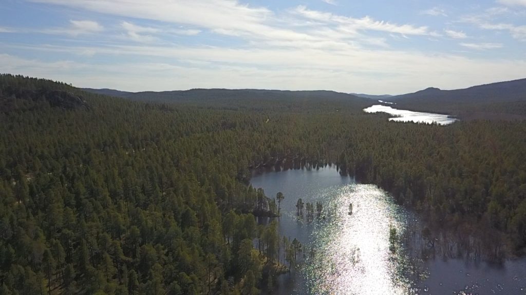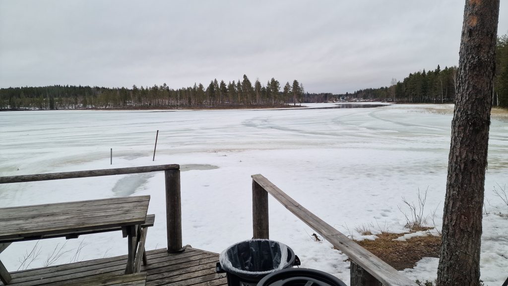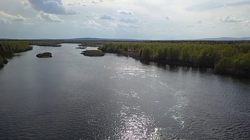 Dann biege ich auf eine noch kleiner Schotterstraße ab. Ein Schild weist darauf hin, dass das Befahren auf eigene Gefahr erfolgt und nach weiteren sechs Kilometer stehe ich mitten im Nirgendwo am Fluss Ounasjoki. Es ist viertel nach vier. Ich baue Tisch und Stuhl auf, öffne mir ein Bier als „Anleger“ und schaue auf das Wasser. Eigentlich ein schönes Motiv für eine Luftaufnahme. Nach wenigen Minuten ist meine Drohne startklar, die Software sagt mir, dass in der Nähe ein privater Flugplatz ist, als bleibe ich unter fünfzig Metern und mache ein paar eindrucksvolle Bilder.