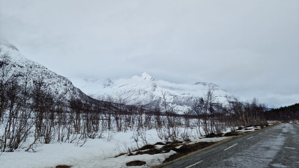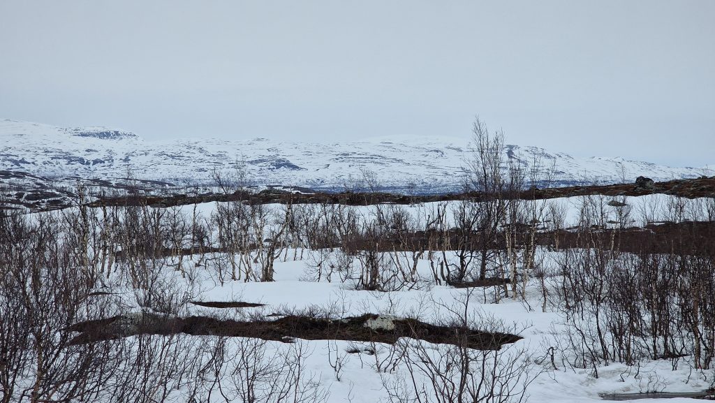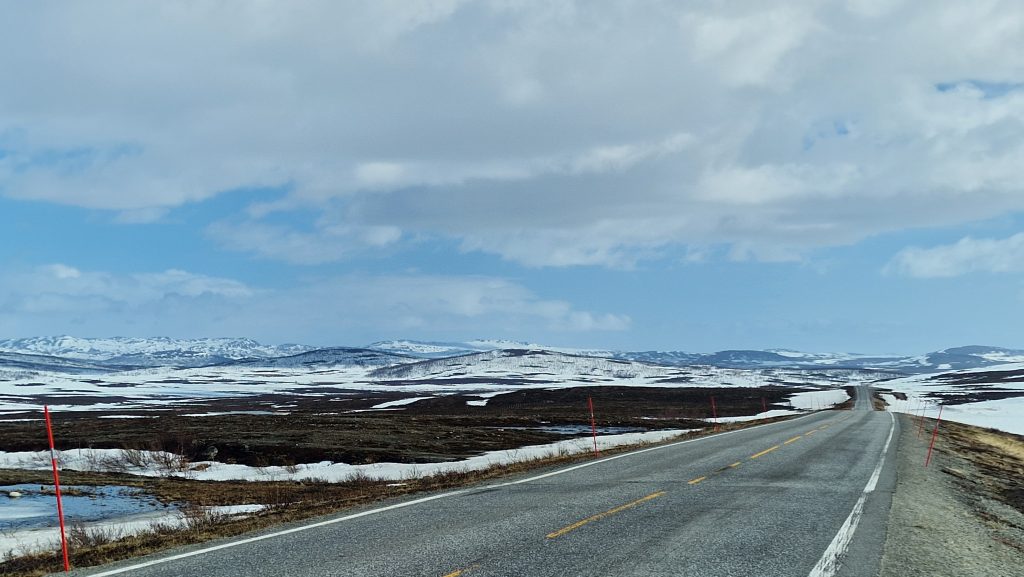 Nicht weit möchte ich heute fahren. Es sind knapp einhundertsechzig Kilometer. Ich werde dennoch vier Stunden bis dorthin benötigen. Die letzten80 Kilometer werden noch einmal schwierig. Der Asphalt endet und von nun an geht es auf Schotter weiter. Irgendwie erinnert mich das alles an meine Kanadareise 2022. Schotterstraßen, unendliche Wälder, weite, oft eintönige Landschaften. Nur etwa einhundert Kilometer bin ich gefahren und schon hat sich die Vegetation grundlegend geändert. In den Birken zeigt sich inzwischen der frische Frühling. Die Tundra hat ihr eintöniges Braun gegen ein noch blasses Grün eingetauscht und die ersten gelben Blümchen strecken ihre Köpfchen aus dem Unterholz. Es ist inzwischen richtig warm geworden. Die Sonne brennt vom Himmel, aber es ist keine gute Sonne. Meine Mutter hätte sie als eine falsche Sonne bezeichnet, denn sie bringt keine Wärme, sondern sengende Hitze, verheißt nichts Gutes, vielleicht Regen, vielleicht gar Gewitter, auch die Wolken weisen eine seltsame Linsenform auf, wie ich das nur vom Föhn kenne. Föhnwetter