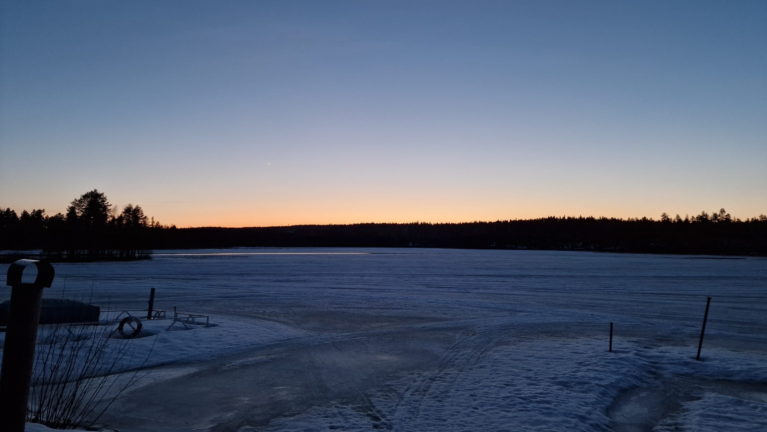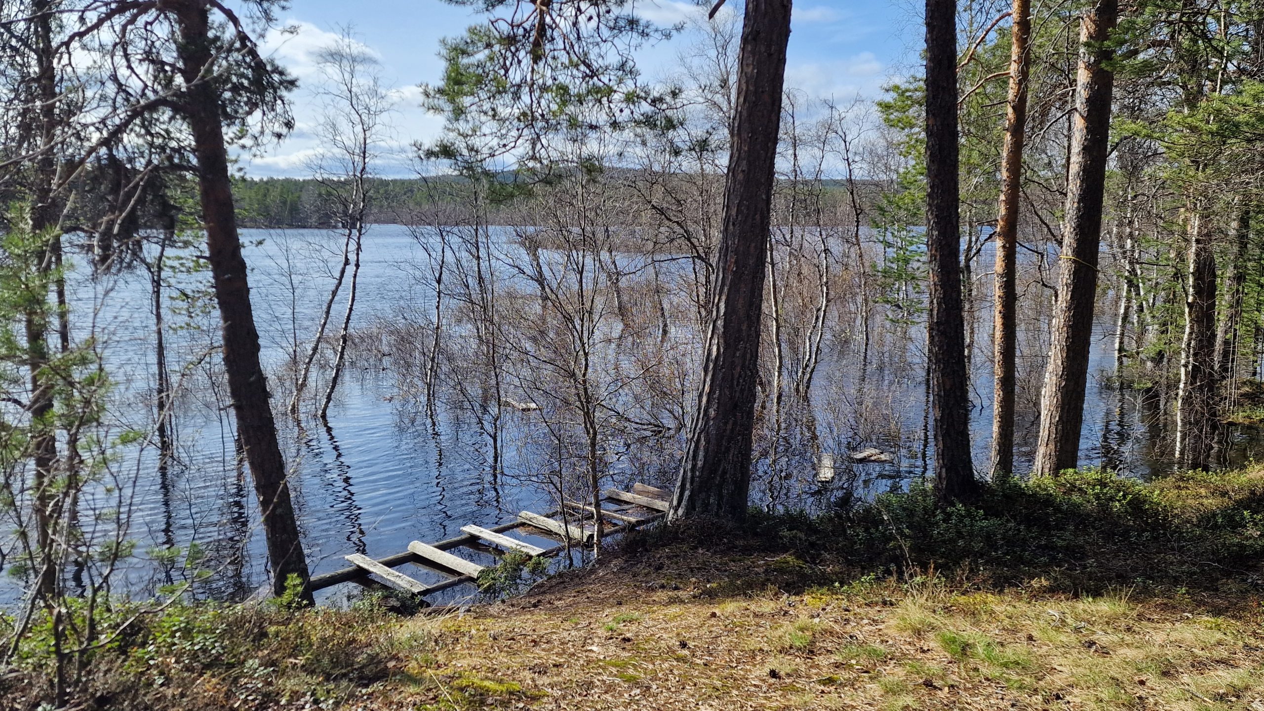 Dann biege ich auf eine noch kleiner Schotterstraße ab. Ein Schild weist darauf hin, dass das Befahren auf eigene Gefahr erfolgt und nach weiteren sechs Kilometer stehe ich mitten im Nirgendwo am Fluss Ounasjoki. Es ist viertel nach vier. Ich baue Tisch und Stuhl auf, öffne mir ein Bier als „Anleger“ und schaue auf das Wasser. Eigentlich ein schönes Motiv für eine Luftaufnahme. Nach wenigen Minuten ist meine Drohne startklar, die Software sagt mir, dass in der Nähe ein privater Flugplatz ist, als bleibe ich unter fünfzig Metern und mache ein paar eindrucksvolle Bilder.