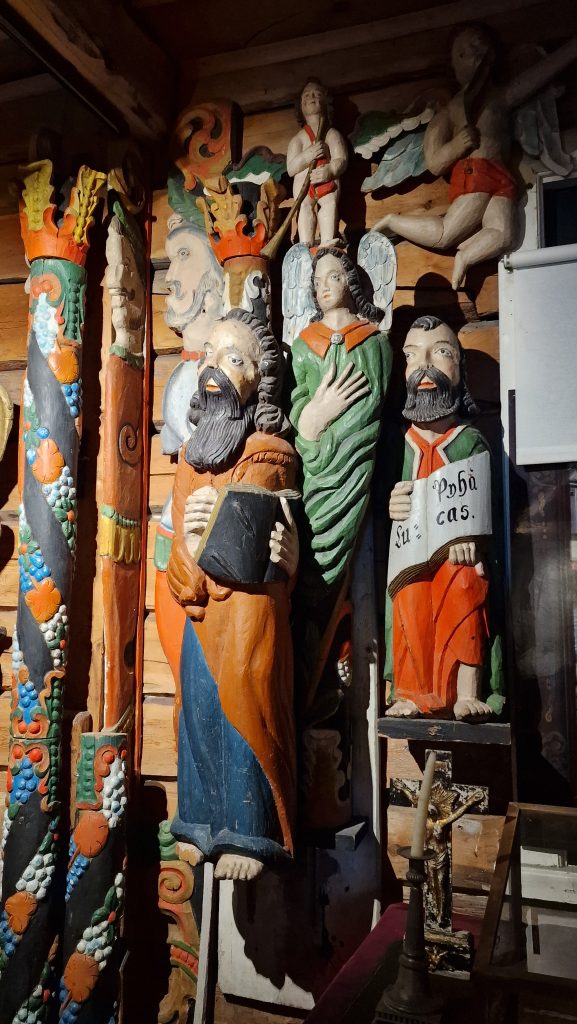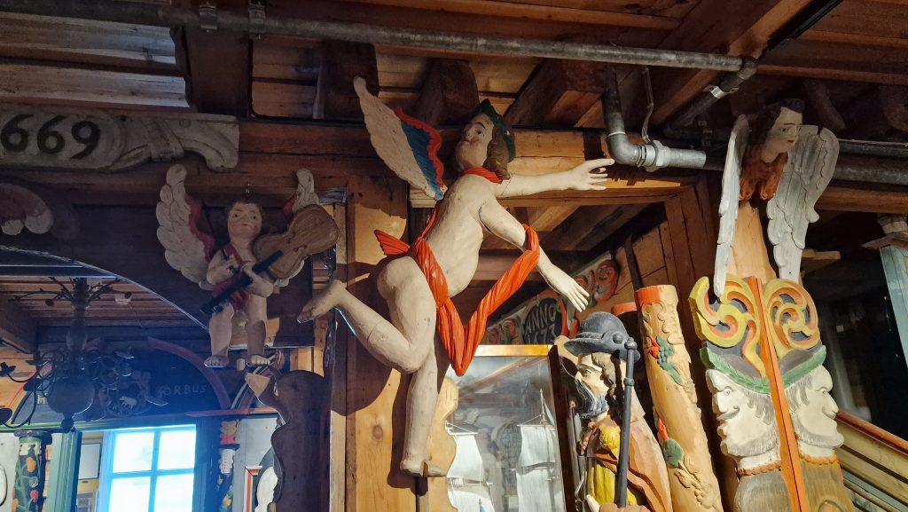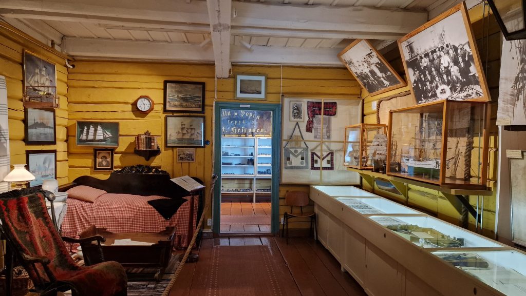 Die kleine Stadt Rahe ist tatsächlich ein hübscher Ort mit kleinen bunten Holzhäschen und herrschaftlichen Wohnhäusern der Kaufleute und Schiffseigner. Im Museum Rahe ist ein Raum gefüllt mit Figuren der alten, abgebrannten Kirche. Ihre Bemalung wirkt geradezu kindlich. Es gibt auch eine Abteilung, in der Kinderbilder ausgestellt wurden und bei einer der Fotografien musste ich sofort daran denken, dass laut einer internationalen Erhebung, die Finnen das glücklichste Volk seien. Die beiden abgelichteten Kinder gehörten offensichtlich nicht dazu. Katjas Kommentar: ‚Den Gesichtsausdruck kenne ich. Wie meine nach Fernsehverbot‘.