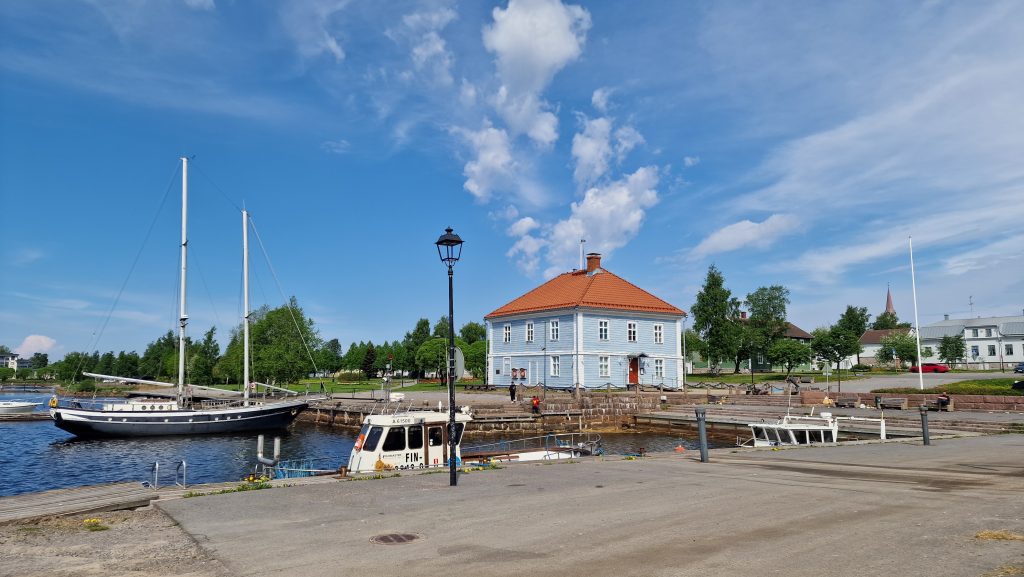 Es ist der zweite Juni und ich habe Oulu verlassen. Auf der E8 ziehe ich weiter nach Süden. Auch heute meint es Wetter gut mit mir und so cruise ich dahin. Kurz hinter Oulu lege ich noch einmal einen Stopp ein, um eine Runde zu laufen und hier scheint mir ein geeigneter Ort zu sein. Eineinhalb Stunden später besteige ich wieder meinen FidiBus und fahre weiter bis kurz vor Kokkula. Es soll ein schönes Städtchen sein. Doch ist bereits spät und ich lasse mich von meiner iOverlander App zu einem schönen abgelegenen kleinen Hafen lotsen. Durch einen Zauberwald fahre ich auf geschotterter Piste ein gutes Stück nach Osten, dem Meer entgegen. Und dann am Ende der Straße fahre ich hinaus aus dem Wald und stehe am Ufer einer Bucht mit dem kleinen Hafen. Nur wenige Boote liegen hier. Später am Abend kommen dann noch zwei weitere Boote. Sie kommen von ihrem Wochenendausflug aus den Schären. Sie haben dort auf den kleinen Schäreninseln ihre Hütten. Keine Straße, kein Weg führt dorthin. Nur mit dem Boot kann man sie erreichen. Sofort träume ich mich in eine dieser Hütten, höre nur das Plätschern der Wellen, die sacht ans Ufer rollen, sehe die Sonne wie orange und dann blutrot für ein paar Minuten unter dem Horizont verschwindet, um dann in den neuen Tag hineinzuleuchten. Ach, es ist nur ein Traum. Nach dem Abendessen steige ich ins Bett. Morgen bin ich dann in Kokkola.
