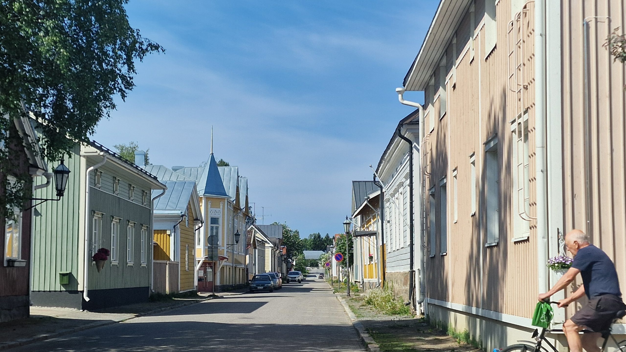 31. Mai 2024 Bevor ich wieder aufbreche, möchte ich noch eine Stunde laufen. Erst entlang der Promenade, dann durch die Stadt. Nur in unmittelbarer Nähe zum Hafen kann man Kemi als schön bezeichnen oder wenigstens als belebt und mit historischen Relikten des früheren Handels. Im Supermarkt kaufe ich noch ein paar Dinge, Öl, Milch, Joghurt und dann breche ich gegen Mittag auf.