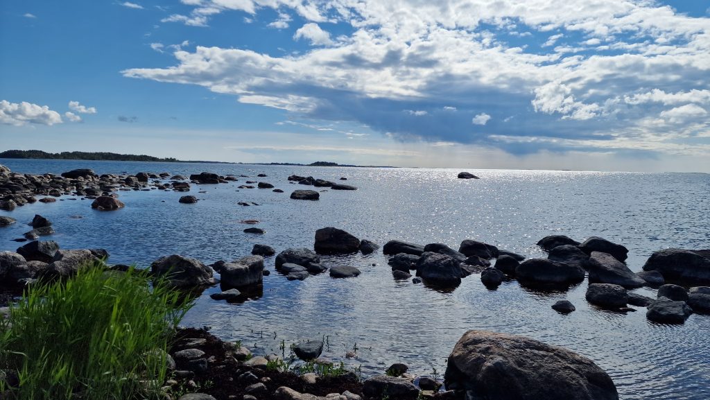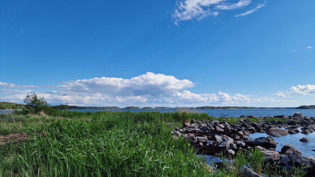 Aus einem Zwischenstopp bis Helsinki wurden es dann doch zwei. Ich wollte ein Stück durch den Naturpark von Hierdunpolku wandern und außerdem erwartet mich dort in Railan Ranta eine Sauna direkt am Meer. Der Weg dorthin war beschwerlich. Acht Kilometer übelster Schotterpiste brachten mich zu einem Platz, der als sehr schön, mit Tisch und Bank und Plumpsklo beschrieben war. Einziger Fehler: Der Platz war geschlossen. Dafür gab es fünfhundert Meter davor die Möglichkeit auf einem Parkplatz zu stehen, auch für die Nacht. Die Wanderung war sehr schön, doch die Sauna blieb ein frommer Wunsch. Es ist Wochenende und da ist die Sauna ausgebucht. Pech gehabt. Aber wenigstens hatte ich die Wanderung immer am Ufer der Ostsee, durch Schilf und Wald. So war ich dann am Abend redlich müde.