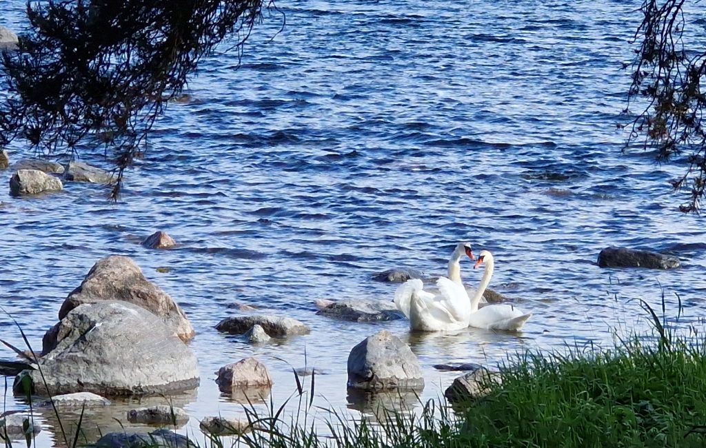 Mein Ziel, eine der vielen, tief ins Land hereinreichenden Meeresbuchten des Baltischen Meeres, habe ich mir für heute aus meiner App herausgesucht. Es ist tatsächlich ein ruhiger Ort, mit einem überdachten Unterschlupf, einer Feuerstelle und einem Vogel-Beobachtungsturm. Im Schilf liegen einige Ruderboote und es herrscht eine wohltuende Stille. Nur der Flügelschlag der Schwäne schallt hin und wieder über das Wasser, wenn die großen Vögel sich schwerfällig und mit langem Anlauf aus dem Wasser heben. Noch lange hört man dann ihr Stöhnen beim Aufstieg, bis sie ihre Flughöhe erreicht haben. Was muss es sie für eine Kraft kosten, den schweren Körper in die Lüfte zu erheben um tausende von Kilometern in ihr Winterquartier zu fliegen. Am Abend kommen ein paar Fischer. Sie machen ihre Ruderboote klar und stellen fern vom Ufer ihre Standnetze auf. Sie lächeln mir freundlich zu, doch das war’s dann auch schon an überschwänglicher Begrüßung. Nun, zumindest stören sie sich nicht an meiner Anwesenheit.