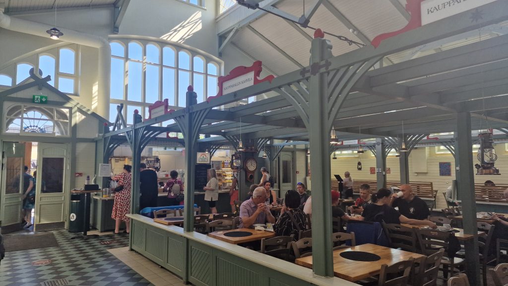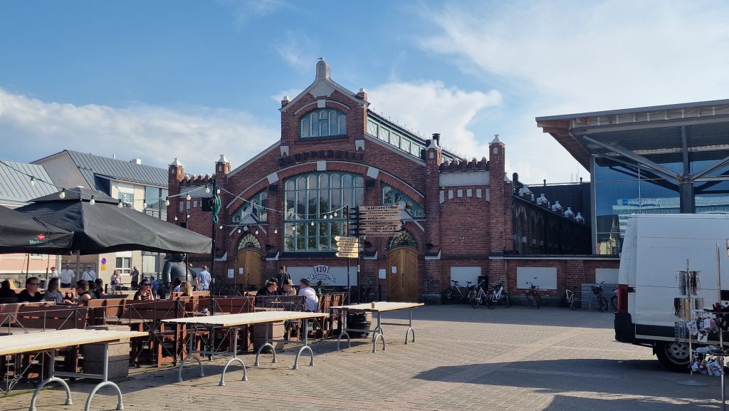 Heute ist die Kauppahalli, die Markthalle, geöffnet. Auf den ersten Blick machte sie den Eindruck einer gut ausgestatteten Markthalle, doch erweist sich das Angebot als äußerst beschränkt. Ein Fischhändler, ein Wurst- und Fleischgeschäft und ansonsten Kunsthandwerk und ein Restaurant. Das alles ist zwar sehr hübsch, aber wenn man die Kleine Markthalle in Frankfurt gewöhnt ist…