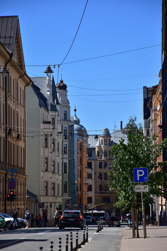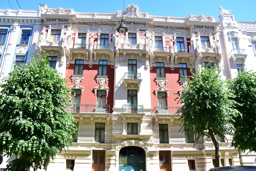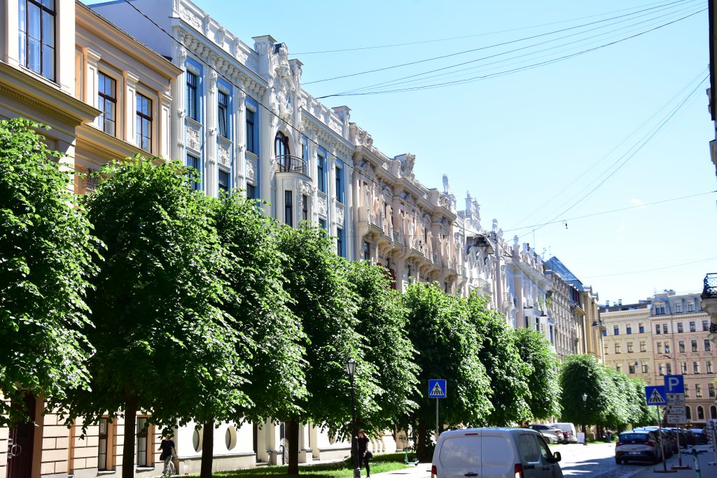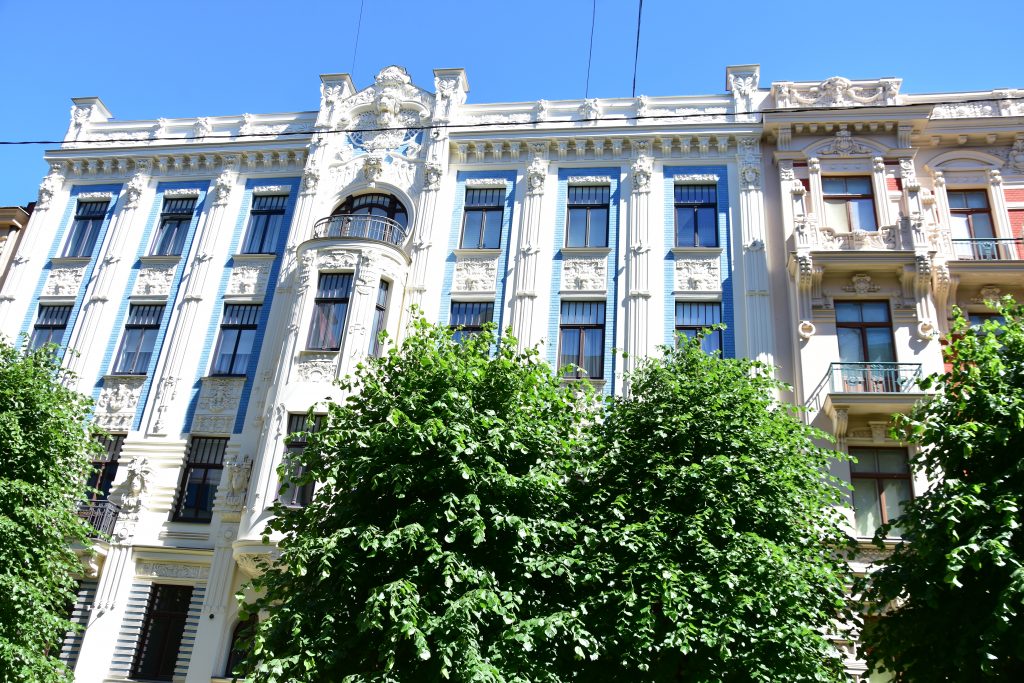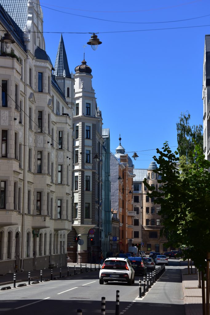 Heute scheint die Sonne und es verspricht ein warmer Tag zu werden. Genau richtig für einen weiteren Stadtrundgang. Die kaputte Hose habe ich in meine Kleiderkiste verbannt, die neue Hose ist auf Löcher und Fluchtwege untersucht und ich bestelle mir wieder ein Taxi. Die App zeigt mir einen Preis bis zum Jugendstil-Quartier, zwanzig Minuten Fahrzeit, von einem Euro und achtzig Cent und eine Wartezeit von 2 Minuten. Alle Angeben stimmten exakt. Direkt vor dem Jugendstil-Museum ließ ich mich in der Alberta Iela absetzen. Das Taxi entfernte sich und meine Verlier-App verhielt sich ruhig. Vorsichtshalber überprüfe ich selbst noch einmal alles. Autoschlüssel im Rucksack, Portemonnaie in der Tasche, Ersatzschlüssel am Bus. Prima. Dann also los. Die Alberta Iela ist wohl die bekannteste Straße des Jugendstilzentrums. Hier stehen die schönsten und am besten renovierten Häuser dicht an dicht. Allerdings auch nur auf einer Straßenseite. Die andere Seite ist ein wenig unspektakulärer, sieht man einmal von der Residenz der Botschaften Österreichs und Irlands ab, die ebenfalls in einem prachtvollen Gebäude untergebracht sind. An einem Postkartenständer stoße ich auf ein älteres Ehepaar, das sich mit einem Stapel von Postkarten eindeckt, die alle ein Motiv zeigen. Es ist das Haus, in dem sich auch das Jugendstil-Museum befindet. Wir kommen ins Gespräch und ich erfahre, dass seine Großeltern einst im fünften Stock des Hauses gewohnt hatten. Wäre ich bereits im Museum gewesen, hätte ich gewusst, mit wem ich es da zu tun habe.