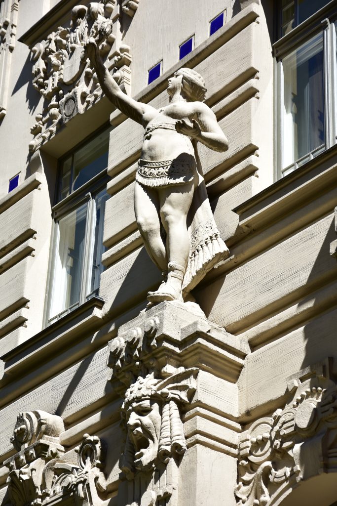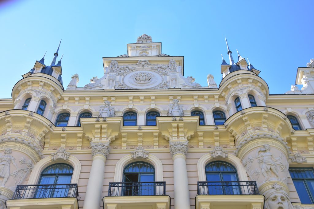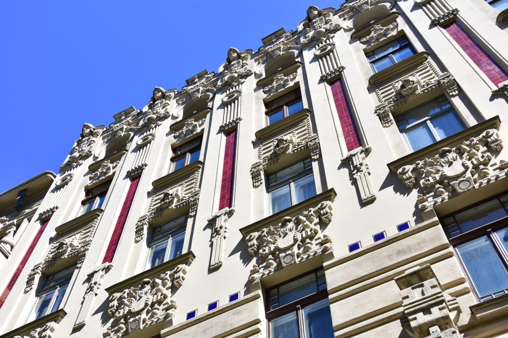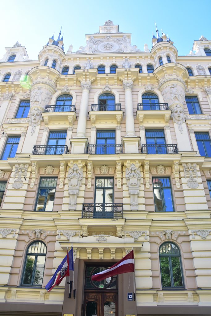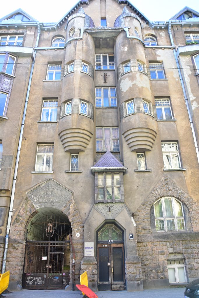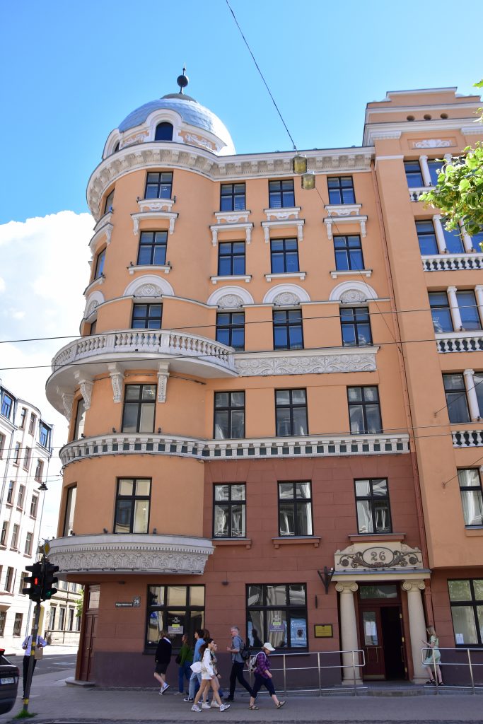 Heute scheint die Sonne und es verspricht ein warmer Tag zu werden. Genau richtig für einen weiteren Stadtrundgang. Die kaputte Hose habe ich in meine Kleiderkiste verbannt, die neue Hose ist auf Löcher und Fluchtwege untersucht und ich bestelle mir wieder ein Taxi. Die App zeigt mir einen Preis bis zum Jugendstil-Quartier, zwanzig Minuten Fahrzeit, von einem Euro und achtzig Cent und eine Wartezeit von 2 Minuten. Alle Angeben stimmten exakt. Direkt vor dem Jugendstil-Museum ließ ich mich in der Alberta Iela absetzen. Das Taxi entfernte sich und meine Verlier-App verhielt sich ruhig. Vorsichtshalber überprüfe ich selbst noch einmal alles. Autoschlüssel im Rucksack, Portemonnaie in der Tasche, Ersatzschlüssel am Bus. Prima. Dann also los. Die Alberta Iela ist wohl die bekannteste Straße des Jugendstilzentrums. Hier stehen die schönsten und am besten renovierten Häuser dicht an dicht. Allerdings auch nur auf einer Straßenseite. Die andere Seite ist ein wenig unspektakulärer, sieht man einmal von der Residenz der Botschaften Österreichs und Irlands ab, die ebenfalls in einem prachtvollen Gebäude untergebracht sind. An einem Postkartenständer stoße ich auf ein älteres Ehepaar, das sich mit einem Stapel von Postkarten eindeckt, die alle ein Motiv zeigen. Es ist das Haus, in dem sich auch das Jugendstil-Museum befindet. Wir kommen ins Gespräch und ich erfahre, dass seine Großeltern einst im fünften Stock des Hauses gewohnt hatten. Wäre ich bereits im Museum gewesen, hätte ich gewusst, mit wem ich es da zu tun habe.