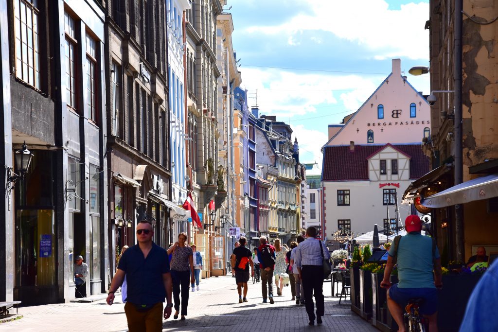 Auf meinem Rückweg zu meinem FidiBus laufe ich über den Rathausplatz, vorbei am Schwarzhäupterhaus, einer der Hauptattraktionen Rigas. Erwähnung fand es erstmals 1334 als das „Neue Haus der großen Gilde“. Im Zweiten Weltkrieg wurde es zerstört und von 1993 an in sechs Jahren wieder in seinem Originalzustand neu errichtet. Der Namensgeber des Schwarzhäupterhauses war die Loge der Schwarzen Häupter. Die noch heute mit ihrem Sitz in Bremen besteht. Von hier aus zog ich weiter du den drei Brüdern, einem farbigen Häuserkomplex, nahe dem lettischen Regierungssitz. Vom vielen Herumlaufen bin ich müde und meine Füße schmerzen, doch ich bin noch nicht in der Laune, das städtische Treiben zu verlassen, da höre ich aus einem Lokal Musik, die meine müden Füße direkt in die, mit alten Motorrädern und anderem Trödel eingerichtete Bar lenkt.