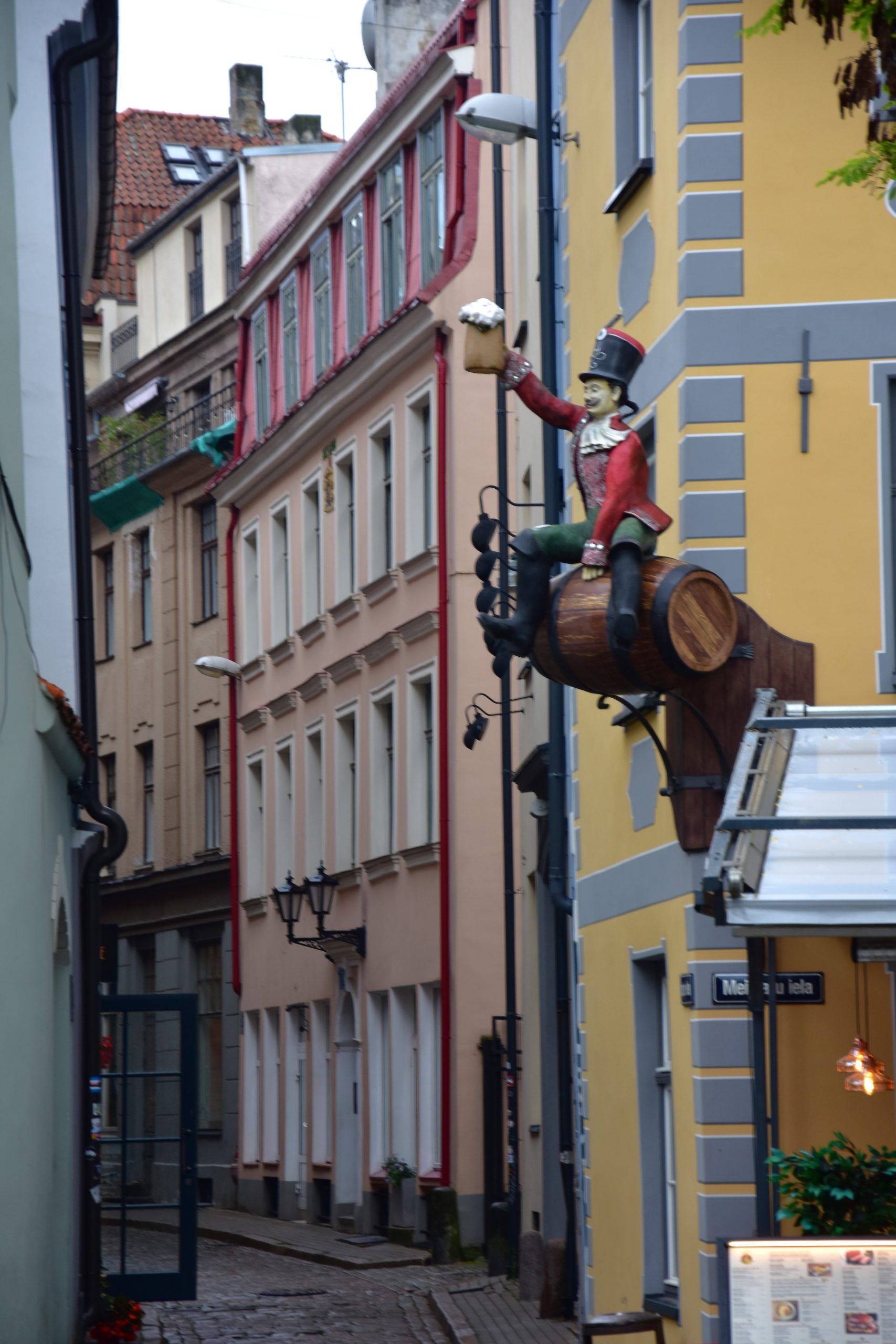 Auf meinem Rückweg zu meinem FidiBus laufe ich über den Rathausplatz, vorbei am Schwarzhäupterhaus, einer der Hauptattraktionen Rigas. Erwähnung fand es erstmals 1334 als das „Neue Haus der großen Gilde“. Im Zweiten Weltkrieg wurde es zerstört und von 1993 an in sechs Jahren wieder in seinem Originalzustand neu errichtet. Der Namensgeber des Schwarzhäupterhauses war die Loge der Schwarzen Häupter. Die noch heute mit ihrem Sitz in Bremen besteht. Von hier aus zog ich weiter du den drei Brüdern, einem farbigen Häuserkomplex, nahe dem lettischen Regierungssitz. Vom vielen Herumlaufen bin ich müde und meine Füße schmerzen, doch ich bin noch nicht in der Laune, das städtische Treiben zu verlassen, da höre ich aus einem Lokal Musik, die meine müden Füße direkt in die, mit alten Motorrädern und anderem Trödel eingerichtete Bar lenkt.