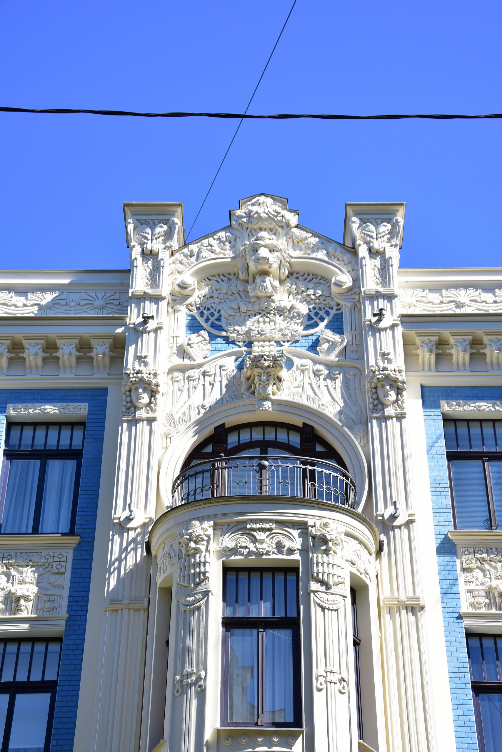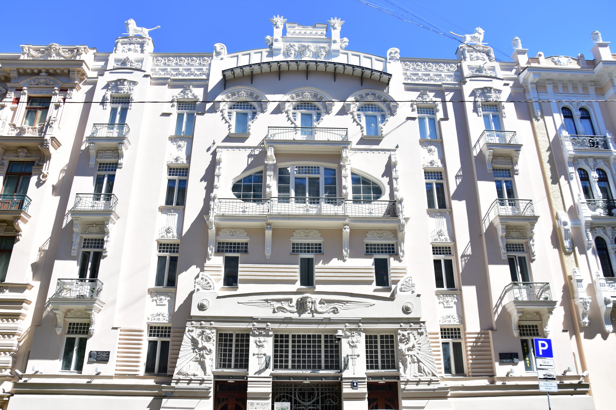 Heute scheint die Sonne und es verspricht ein warmer Tag zu werden. Genau richtig für einen weiteren Stadtrundgang. Die kaputte Hose habe ich in meine Kleiderkiste verbannt, die neue Hose ist auf Löcher und Fluchtwege untersucht und ich bestelle mir wieder ein Taxi. Die App zeigt mir einen Preis bis zum Jugendstil-Quartier, zwanzig Minuten Fahrzeit, von einem Euro und achtzig Cent und eine Wartezeit von 2 Minuten. Alle Angeben stimmten exakt. Direkt vor dem Jugendstil-Museum ließ ich mich in der Alberta Iela absetzen. Das Taxi entfernte sich und meine Verlier-App verhielt sich ruhig. Vorsichtshalber überprüfe ich selbst noch einmal alles. Autoschlüssel im Rucksack, Portemonnaie in der Tasche, Ersatzschlüssel am Bus. Prima. Dann also los. Die Alberta Iela ist wohl die bekannteste Straße des Jugendstilzentrums. Hier stehen die schönsten und am besten renovierten Häuser dicht an dicht. Allerdings auch nur auf einer Straßenseite. Die andere Seite ist ein wenig unspektakulärer, sieht man einmal von der Residenz der Botschaften Österreichs und Irlands ab, die ebenfalls in einem prachtvollen Gebäude untergebracht sind. An einem Postkartenständer stoße ich auf ein älteres Ehepaar, das sich mit einem Stapel von Postkarten eindeckt, die alle ein Motiv zeigen. Es ist das Haus, in dem sich auch das Jugendstil-Museum befindet. Wir kommen ins Gespräch und ich erfahre, dass seine Großeltern einst im fünften Stock des Hauses gewohnt hatten. Wäre ich bereits im Museum gewesen, hätte ich gewusst, mit wem ich es da zu tun habe.