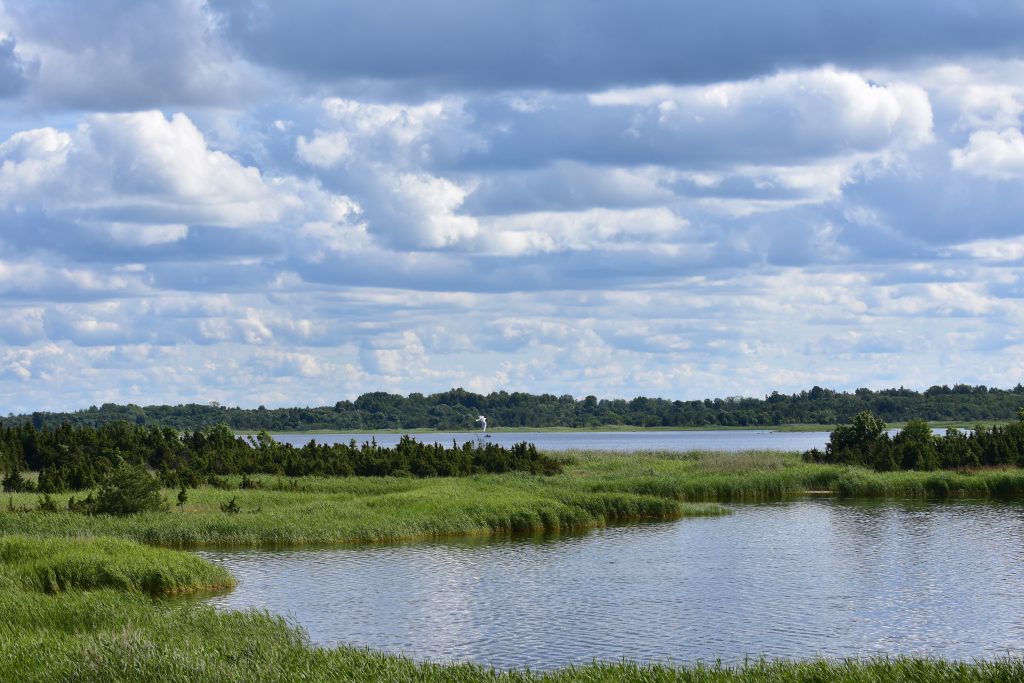 Mein Ziel, eine der vielen, tief ins Land hereinreichenden Meeresbuchten des Baltischen Meeres, habe ich mir für heute aus meiner App herausgesucht. Es ist tatsächlich ein ruhiger Ort, mit einem überdachten Unterschlupf, einer Feuerstelle und einem Vogel-Beobachtungsturm. Im Schilf liegen einige Ruderboote und es herrscht eine wohltuende Stille. Nur der Flügelschlag der Schwäne schallt hin und wieder über das Wasser, wenn die großen Vögel sich schwerfällig und mit langem Anlauf aus dem Wasser heben. Noch lange hört man dann ihr Stöhnen beim Aufstieg, bis sie ihre Flughöhe erreicht haben. Was muss es sie für eine Kraft kosten, den schweren Körper in die Lüfte zu erheben um tausende von Kilometern in ihr Winterquartier zu fliegen.