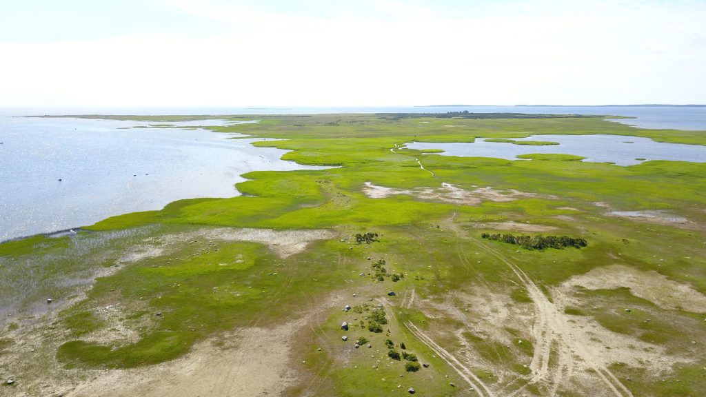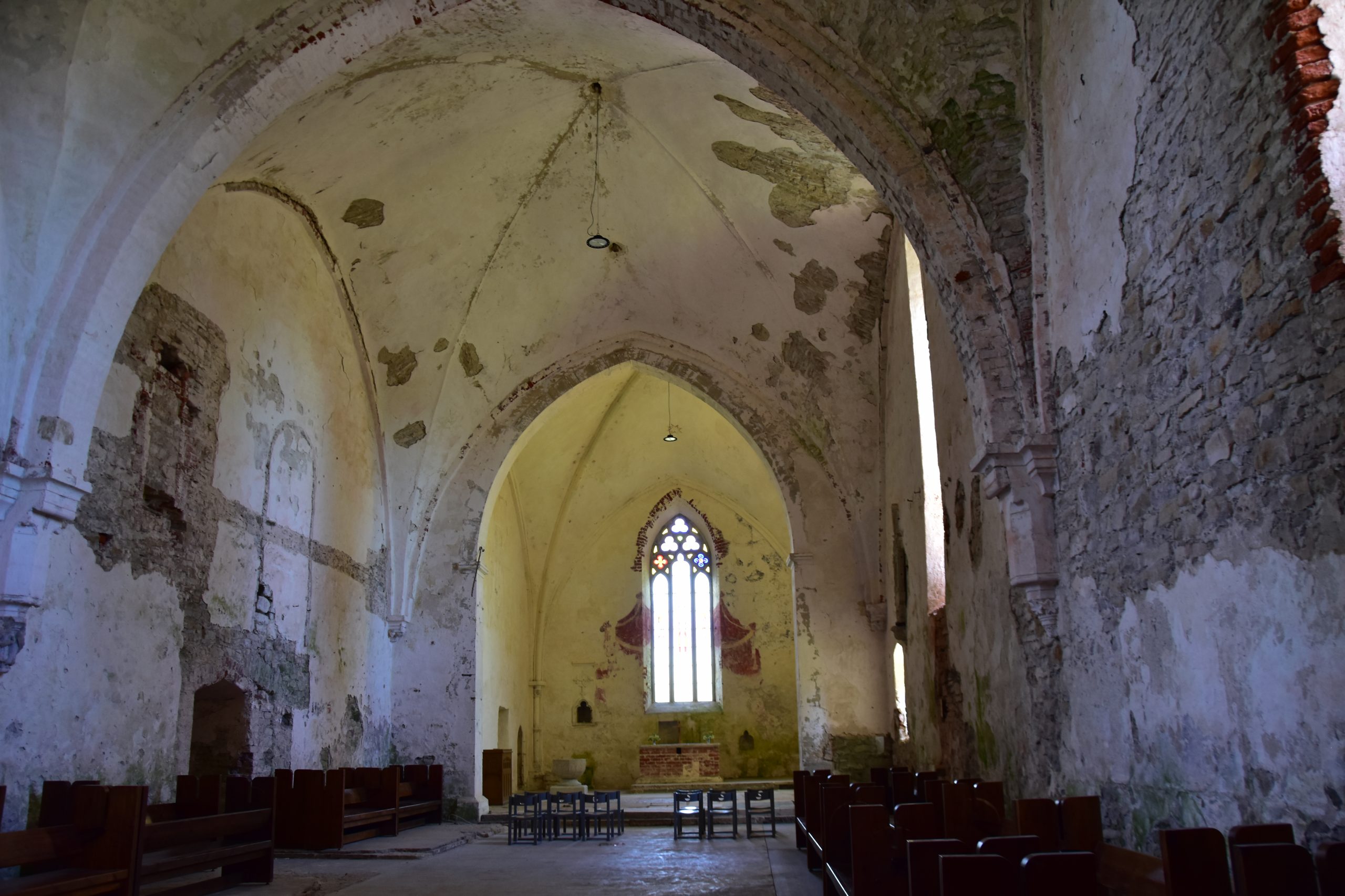 Über einen langen Damm gelange ich auf die Hauptinsel Saaremaa. Nach einem Blick auf Google Maps entscheide ich wieder, meinen Weg auf kleinen Nebenstraßen fortzusetzen und so gelange ich zu dem Ort Pöide und schon von weitem erblicke ich eine Kirche, von der ich annehme, dass ein Besuch lohnend sei. So war es dann auch. Die Kirche der heiligen Maria geht auf das Jahr 1230 zurück. Ihr Erhaltungszustand ist erbärmlich, doch die Zeichen einer Restaurierung sind unverkennbar. Sie erzählt eine lange Geschichte der Besiedlung der Insel und ist einen Besuch sicher wert. Von hier aus fahre ich weiter, bis ich den Leuchtturm Sörve Tuletorn. Ein kleiner Spaziergang bis zum Kap, dem südlichsten Punkt Estlands, von dem man bereits das Nordufer Lettlands erkennen kann, bietet mir einen malerischen Blich über das Meer, ein paar Boote zum Leuchtturm. Unterhalb des Leuchtturmes verbringe ich die Nacht, die noch immer taghell ist.