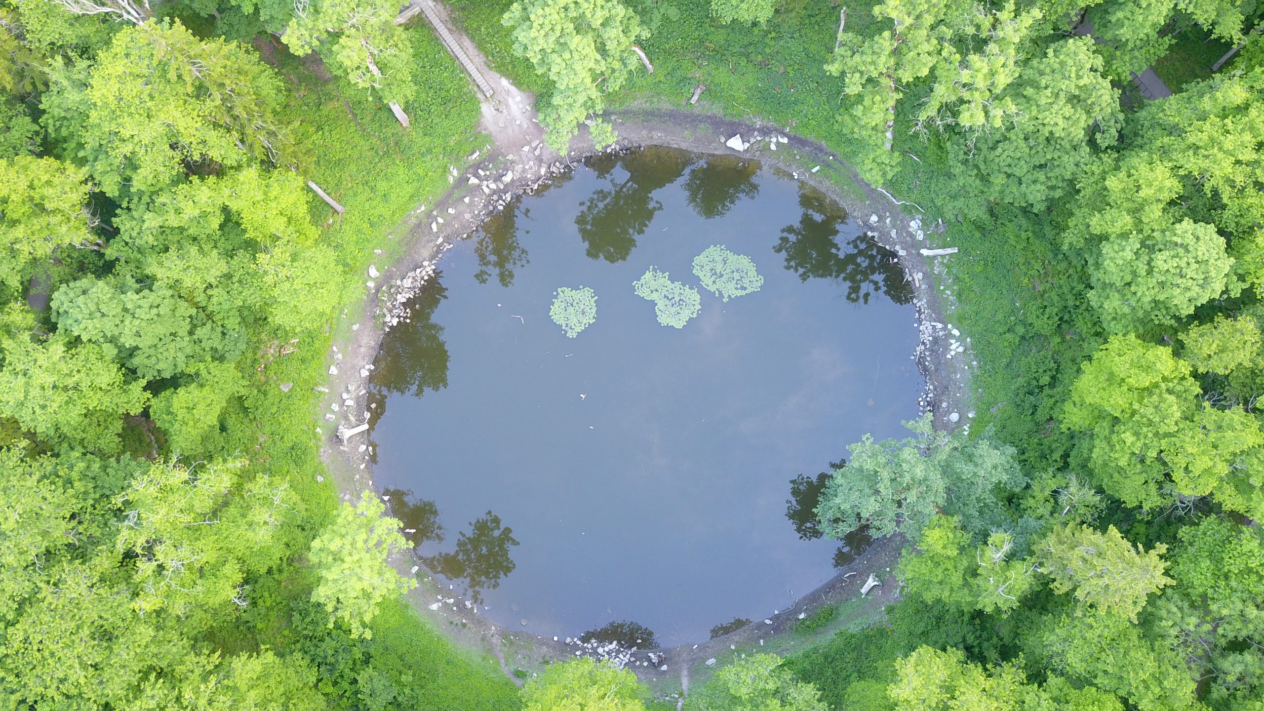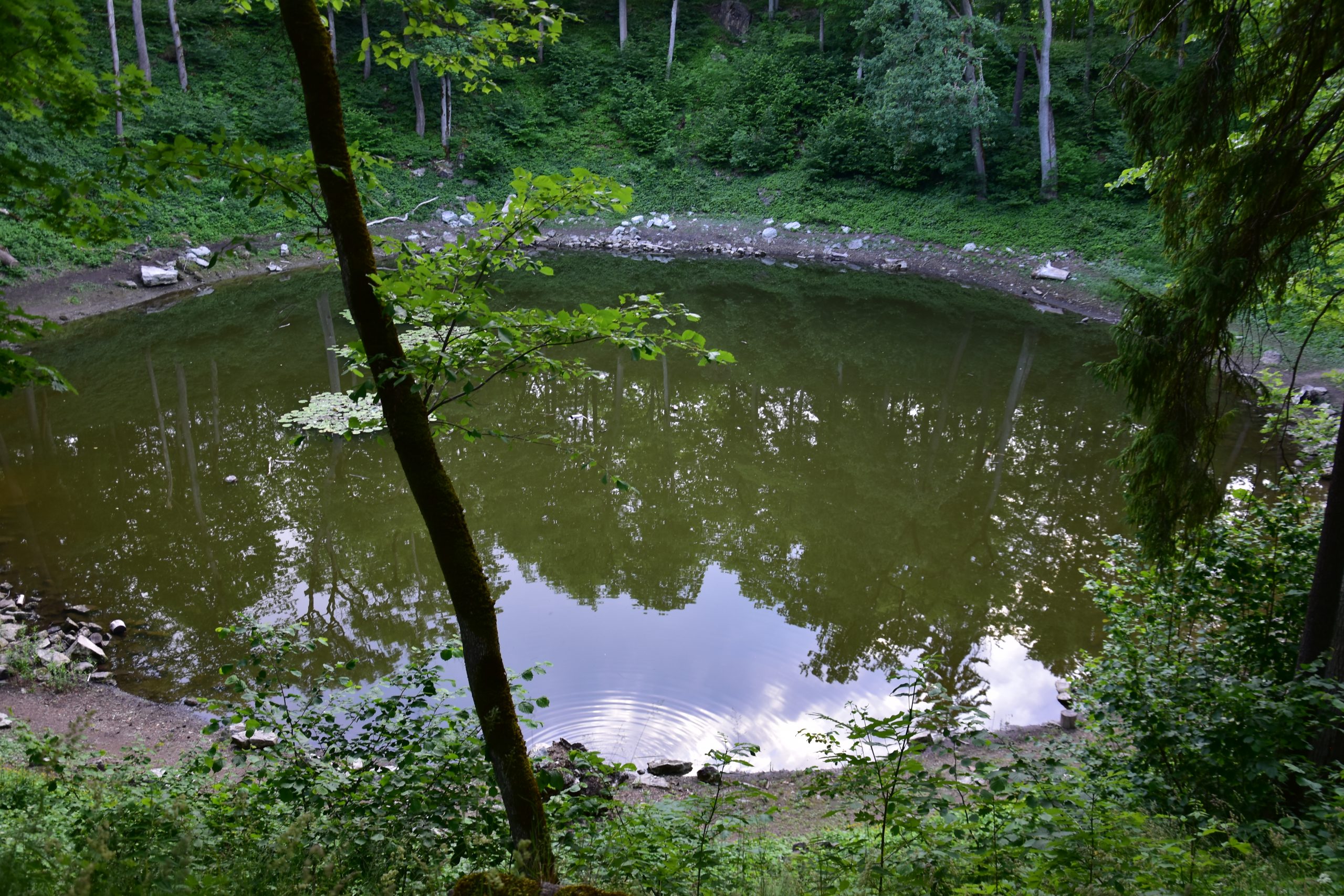 Nächster Stopp ist der Mühlenberg von Angla, wo fünf Mühlen in einer Reihe stehen. Das Gelände ist eingezäunt und da es nach 18:00 Uhr ist, nicht mehr zugänglich. Dennoch bleibt die Möglichkeit, einen Blick von außen auf die Mühlen zu erlangen. Der letzte touristische Anlaufpunkt dieses Tages sind die Meteoritenkrater von Kaali. Der größte Krater hat einen Durchmesser von etwa fünfundzwanzig Metern. Kreisrund und mit Wasser gefüllt liegt er in einem Wald, umgeben von dem Ringwall des Einschlages. In seiner näheren Umgebung gibt es ein paar weitere, kleinere Krater, die durch das Auseinanderbrechen des Meteoriten bei seinem Eintritt in die Erdatmosphäre entstanden sind. Da es außer dem Krater keine lohnenswerten Dinge in Kaali zu sehen gibt, fahre ich weiter und suche mir einen Schlagplatz nahe der Fähre.