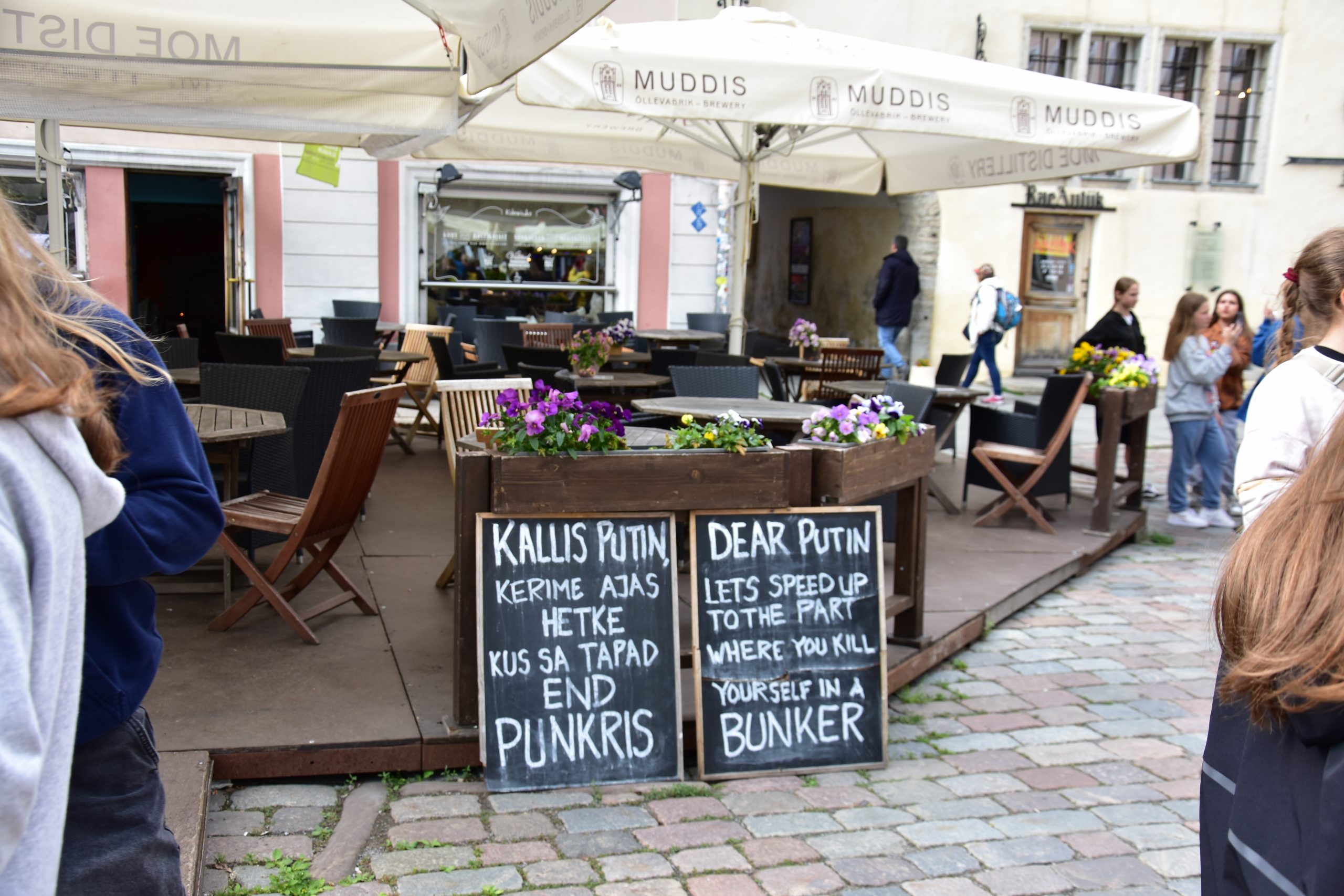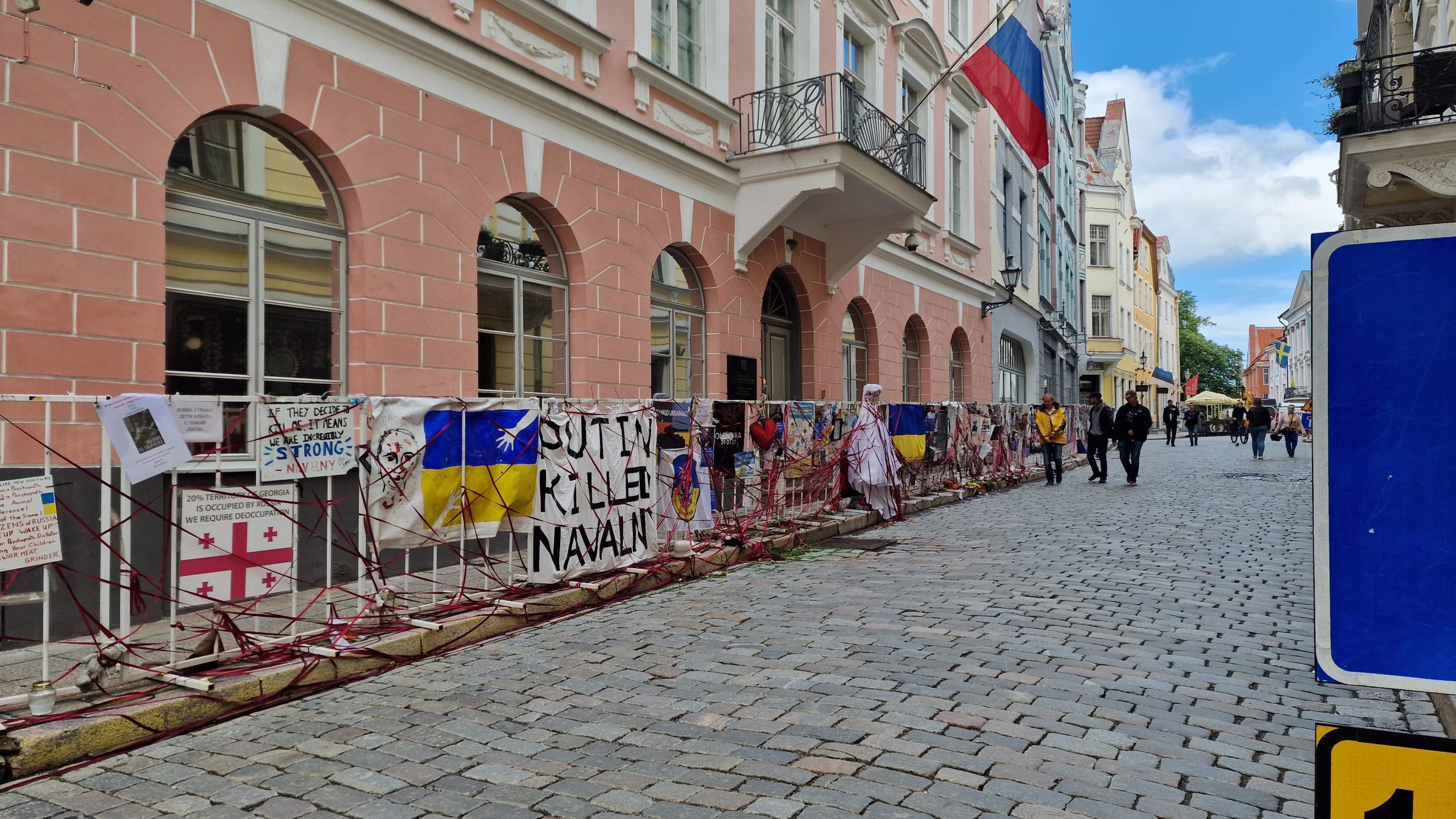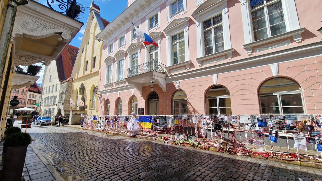 Jetzt kommen die Kirchtürme Tallinns in Sicht und so pünktlich, wie wir Helsinki verlassen haben, so pünktlich laufen wir in den Hafen Tallinns ein. Ich muss tanken und einkaufen, und schon von der Fähre in die Stadt benötige ich eine gute Stunde. Baustellen mit abenteuerlicher Verkehrsführung und der estnische Fahrstil sind mir ungewohnt und erfordern meine ganze Aufmerksamkeit. Dann wird es etwas ruhiger und Tankstelle sowie Supermarkt liegen auf dem gleichen Areal. Die Preise sind hier auffallend geringer und ich muss acht geben, nicht vor Freude in einen Kaufrausch zu verfallen. Dann suche ich mir einen Parkplatz und verschaffe mir einen ersten, ganz schnellen Überblick über die Stadt. Vor der russischen Botschaft sind Protestbanner aufgestellt, in denen Putin als Mörder, Folterer und Kriegstreiber angeklagt wird. Die Polizei bewacht die Banner, ansonsten ist es ruhig, keine Menschenmenge und außer Touristen scheint es niemanden zu interessieren. Im Schifffahrtsmuseum erkundige ich mich nach einem Tallinn-Ticket und erfahre, dass ich dies über das Internet bestellen kann, wodurch ich zwei Euro Rabatt bekomme. Also nur sechsundfünfzig anstelle achtundfünfzig Euro. Na immerhin. Also bestelle ich es für morgen, mir einer Gültigkeit von 24 Stunden.
